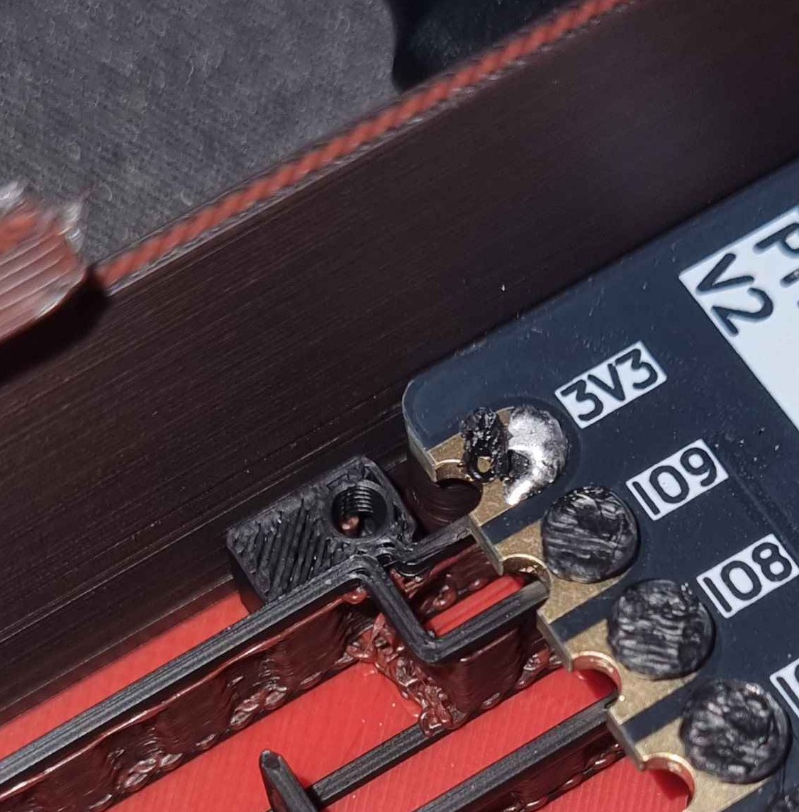I recently took part in a study on the feasibility of 3D printing circuits using electrically conductive filament. We were given a PCB which basically was just a breakout for a Seeeduino ESP32-S3 that broke out the IO, Ground, and 3v3 lines to much larger pitch holes (2.5mm). This meant that we could insert a pause part way through the print, slot the board onto columns designed to fit the holes, and print over them - sealing the connection.